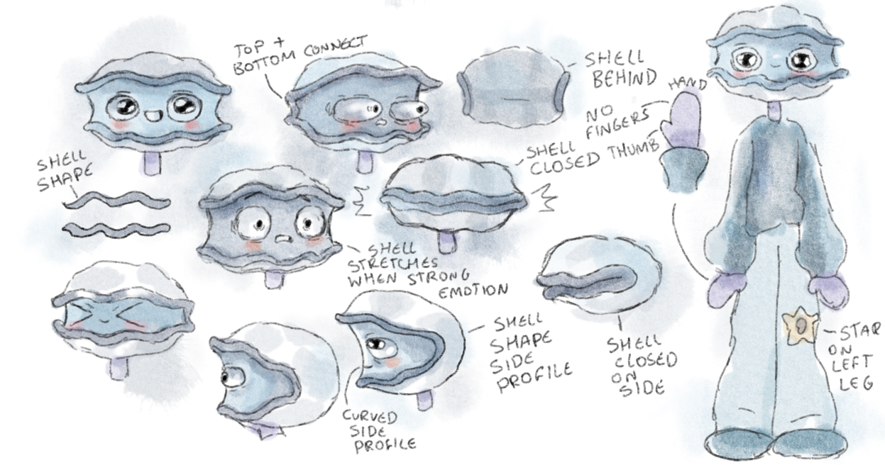 Shelldon the clammy clam visual development
